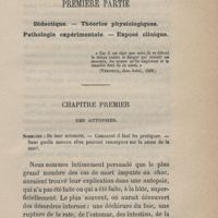 0033 - Page 29 - Première partie. Didactique. - Théories physiologiques. Pathologie expérimentale. - Exposé clinique. Chapitre premier. Des autopsies. Sommaire : De leur nécessité. - Comment il faut les pratiquer. - Dans quelle mesure elles peuvent renseigner sur la cause de la mort