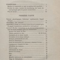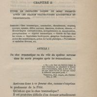 0039 - Page 35 - Chapitre II. Étude de certaines causes de mort prompte après les grands traumatismes accidentels et chirurgicaux. Sommaire. Article I. Du choc traumatique ou du rôle du système nerveux dans les morts promptes après les traumatismes