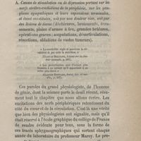 0117 - Page 113 - 2° Causes d'ordre moral, émotionnel, psychique ou si l'on veut, simplement non mécanique. A. Causes de stimulation ou de dépression portant sur les nerfs cérébro-rachidiens de la périphérie, sur les ganglions sympathiques et leurs expansions terminales, et étant constituées, soit par une douleur vive, soit par des lésions de tissus (déchirures, broiements,écrasements, plaies d'armes à feu, grandes brûlures, opérations graves : amputations, désarticulations résections, ablations de vastes tumeurs)