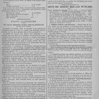0009 - Page 5 - Clinique médicale infantile. Le rhumatisme noueux dans l'enfance, par M. le Dr Paul Simon... / Renseignements cliniques. Médecine. Du coma diabétique, par MM. Roque, Devic et Hugouneng / De l'hémiplégie urémique, par M. Boinet / La bronchite primitive à forme infectieuse, par M. Hanot / Contribution à l'étude expérimentale du streptocoque de l'érysipèle, par H. Roger / Goitre exophtalmique et dégénérescence mentale, par MM. F. Raymond et P. Sérieux / Les neurasthénies locales, par H. Huchard