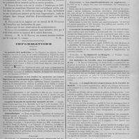 0020 - Page 16 - Informations. France. Hôpitaux de Paris / Société de thérapeutique / Société de stomatologie / Société médico chirurgicale de Paris / Départements. Bordeaux. - Société d'hygiène publique / Société d'anatomie et de physiologie / Nécrologie / Variétés. Préparation du catgut / Emulsions savonneuses / Index bibliographique de clinique et de thérapeutique. Thérapeutique / Hygiène / Clinique médicale / Clinique chirurgicale