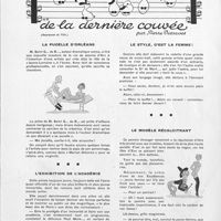 0011 - Page sans numérotation - De la dernière couvée, par Pierre Descaves. La pucelle d’Orléans / L’exhibition de l’académie / Le style, c’est la femme / Le modèle récalcitrant