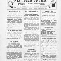 0019 - Page sans numérotation - Le Toubib déchaîné, Supplément à Ridendo. A l’ « officiel » / Hitler est souffrant. / Et M. Mussolini aussi / En Espagne. Un curieux oubli / Les grands procès. Quand Thémis cité Vénus à comparaitre / La grippe dans l’armée / Cent six ans et pas une infirmité / Les théâtres / Échos des cliniques