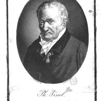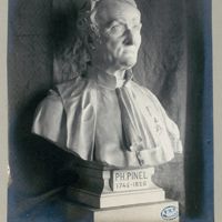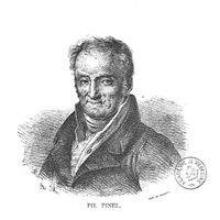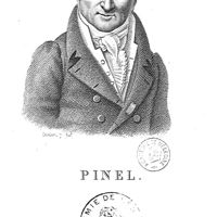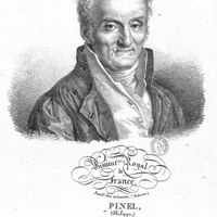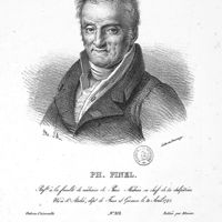 Aliéniste. Né à Castres dans une famille de chirurgiens. Il est docteur en médecine à Toulouse en 1733. Débute d'abord sa carrière médicale à Montpellier puis s'installe à Paris. Médecin de l'Hospice de Bicêtre puis de la Salpêtrière, il est nommé professeur de l'Ecole de Santé de Paris en 1794 après la réorganisation de la médecine. Enseigne la pathologie interne. Pinel est médecin de Napoléon. Il est connu pour avoir amélioré le sort des malades mentaux et leurs conditions d'internement en les libérant de leurs chaînes. Il est l'un des précurseurs de la médecine mentale du XIXè s. avec Cabanis. Il meurt à la Salpêtrière en 1826.