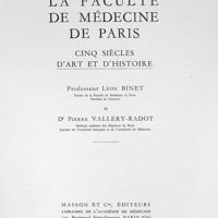 Hommage au doyen Léon Binet [Samedi 12 octobre 1963] -[Paris], Masson, 1963.-38 p. portr. en [2 ] pl. [Cote BIUS Médecine: 167302 (10)]