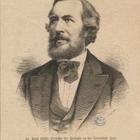 Membre de la Société médicale allemande de Paris en 1860, il était né le 16 Février 1834 à Potsdam, d'un père conseiller gouvernemental, qui l'année suivante fut appelé à Merseburg en Saxe. Dès l'âge de huit ans, il composa un herbier ; plus tard, il lut avec grand intérêt les "Tableaux de la Nature" de Humboldt et "la Vie de la Plante "de Schleiden. Il se rendit ensuite à Berlin pour suivre les cours d'Alexandre Braun, avant d’aller à Wurzbourg où il étudia l'anatomie humaine sous la direction de Koelliker. De retour à Berlin en 1854 pour suivre l'enseignement de J. Müller, il repartit ultérieurement à Wurzbourg pour étudier l'anatomo-pathologie avec Virchow. Il soutint sa thèse de doctorat en médecine et chirurgie le 07 Mars 1857. Après une année de pratique à Vienne il réussit l'examen d'état à Berlin. Il se consacra alors à l'anatomie comparée et à la zoologie. En 1856 il séjourna sur la côte Niçoise avec Mueller et Koelliker afin d'étudier la faune marine, travail qu'il poursuivit en Italie à Naples et Messine en 1859 et 1860. Sur les conseils de son ami Gegenbaur, il se fit agréer Privat-Docent à Iéna, avant de devenir professeur extraordinaire en 1862 et professeur ordinaire de zoologie en 1865. Il fit encore plusieurs voyages de recherches maritimes qui l'amenèrent notamment à Lisbonne Madère, Mogador, puis en Norvège, plus tard en Dalmatie et même en Asie Mineure. Il travailla surtout avec Carl Gegenbaur, tout en professant à Iéna.