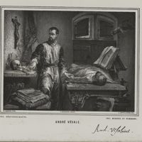 Anatomiste. Auteur d'un des plus célèbres ouvrages d'anatomie du XVIè s., "De Humani corporis fabrica", (dit La Fabrica), publié en 1543 puis en 1555 à Bâle. Médecin de l'Empereur Charles Quint, de Philippe II d'Espagne. Présent au chevet du roi Henri II blessé lors du tournoi qui l'opposa au duc de Montmorency en juillet 1559.
