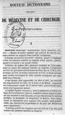 - Bouley Henri-Marie, Reynal Jean, Nouveau dictionnaire pratique de médecine, de chirurgie et d'hygiène vétérinaires. Paris : P. Asselin, 1860, Volume 6, ENC-FES, 700 pages, in-8.